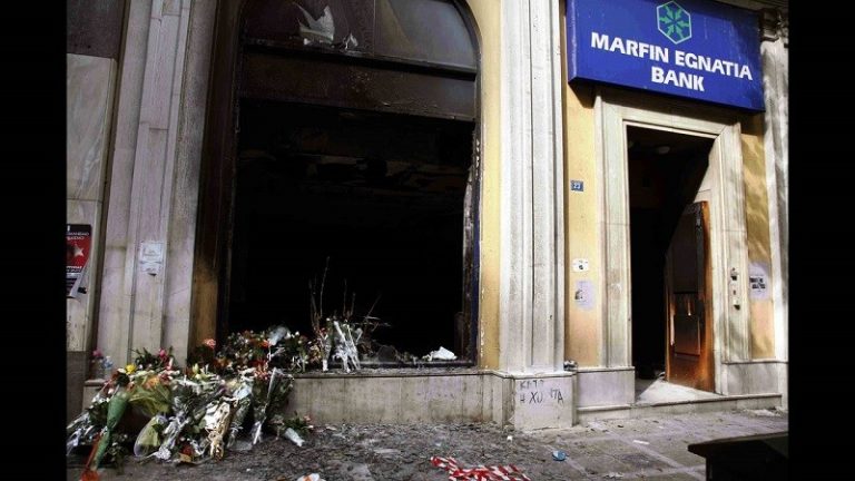 Τα συγκλονιστικά γεγονότα στη Marfin εκτυλίχθηκαν λίγο πριν τις 14:00 της 5ης Μαΐου του ’10, επί διακυβέρνησης Γ Παπανδρέου, σε πορεία κατά του πρώτου μνημονίου.