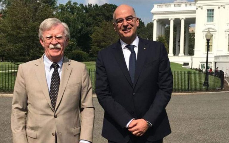 Συνάντηση με τον Σύμβουλο Εθνικής Ασφάλειας των ΗΠΑ, Τζον Μπόλτον, είχε ο υπουργός Εξωτερικών, Νίκος Δένδιας, στο πλαίσιο της επίσκεψης που πραγματοποιεί στην Ουάσιγκτον.