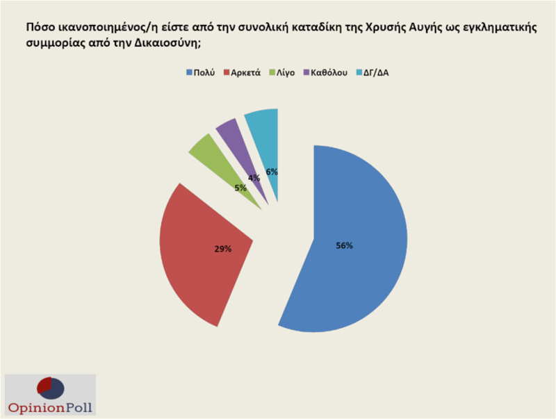 Το 85% δηλώνει ικανοποιημένο από τη συνολική καταδίκη της Χρυσής Αυγής ως εγκληματικής συμμορίας.