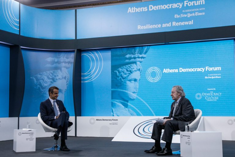 «Συνήψαμε με τον πρόεδρο Μακρόν μία στρατηγική συνεργασία. Υπάρχει το άρθρο της αμοιβαίας αμυντικής συνδρομής, που λέει πως εάν ένα από τα συμβαλλόμενα μέρη δεχθεί επίθεση τότε το άλλο θα συνδράμει προς βοήθεια. Συμβολίζει την δέσμευση της Γαλλίας αλλά και το ενδιαφέρον της για την περιοχή της Ανατολικής Μεσογείου» τόνισε ο Κυριάκος Μητσοτάκης απαντώντας στο ερώτημα «γιατί υπήρξε αυτή η συμφωνία με τη Γαλλία», του δημοσιογράφου των New York Times, Στίβεν Ερλάνγκερ, σε συζήτηση που έχουν αυτή την ώρα, στο πλαίσιο των εργασιών του Συνεδρίου «Athens Democracy Forum».