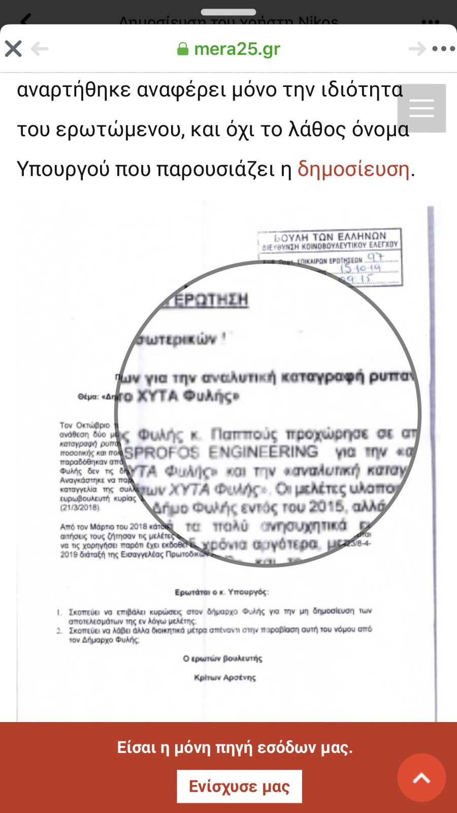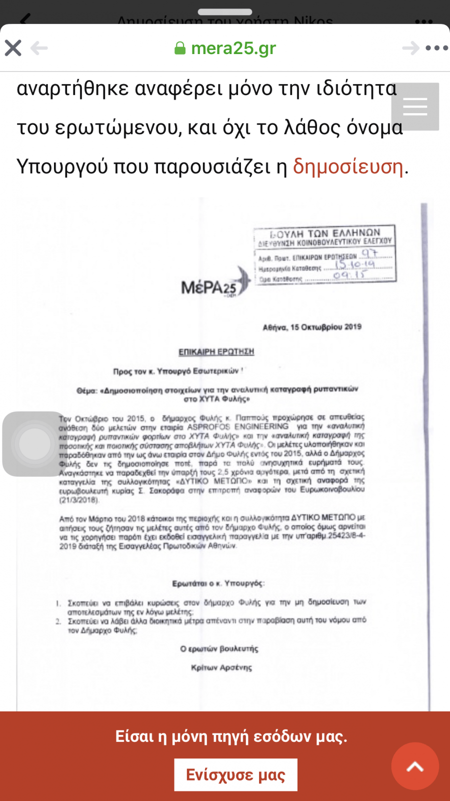 Κύριε Αρσένη ο θεσμικός ρόλος σας ως βουλευτής δεν δικαιολογεί αλλοίωση εγγράφων, θα ήταν πιο τίμιο να το αποδεχτείτε.