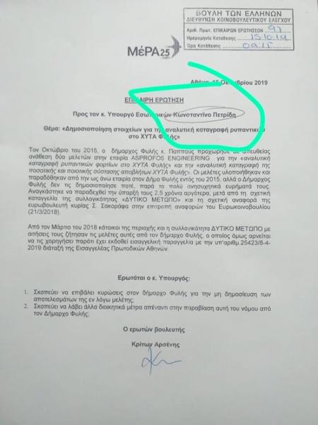 Ο βουλευτής του Δυτικού Τομέα του ΜέΡΑ25, Κρίτων Αρσένης, σε μια προσπάθεια του να δικαιολογήσει το λάθος με το ερώτημα προς τον Κύπριο υπουργό εσωτερικών για τον ΧΥΤΑ της Φυλής, υπέπεσε σε ένα ακόμα σοβαρότερο λάθος.