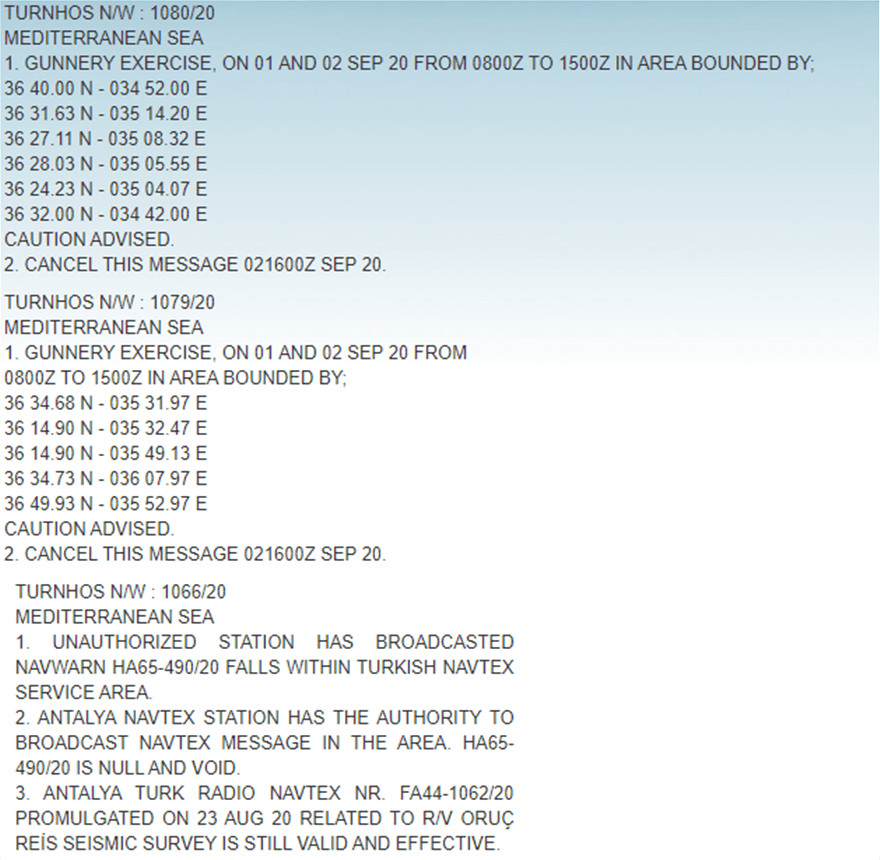 Η NAVTEX εκδόθηκε από τον τουρκικό σταθμό της Αττάλειας.