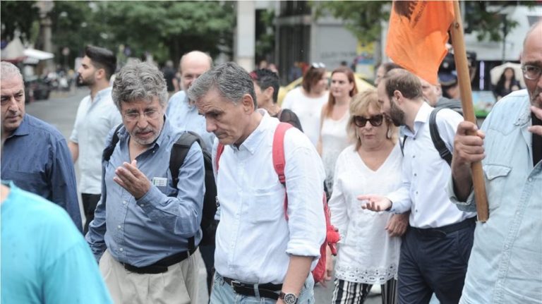Όπως διαπιστώσαμε από φωτογραφίες που δημοσιεύθηκαν στον τύπο και στα μέσα κοινωνικής δικτύωσης -γιατί στη συγκέντρωση και στην πορεία δεν τον αντιληφθήκαμε- στη χθεσινή απεργιακή συγκέντρωση της Α.Δ.Ε.Δ.Υ. παραβρέθηκε ο τ. Υπουργός Οικονομικών, Ευκλείδης Τσακαλώτος.