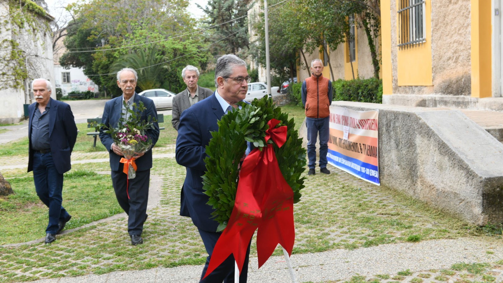 Στεφάνι στο ΕΑΤ – ΕΣΑ κατέθεσε ο γγ της ΚΕ του ΚΚΕ, ως επικεφαλής αντιπροσωπείας του κόμματος.