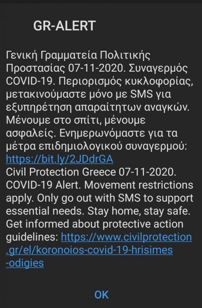 Share Facebook Twitter LinkedIn Pinterest Email Μήνυμα στα κινητά της Αττικής με αφορμή την έναρξη του lockdown από το πρωί του Σαββάτου λόγω κορονοϊού, έστειλε το απόγευμα του Σαββάτου το 112 ΚΟΡΟΝΟΪΟΣ μήνυμα