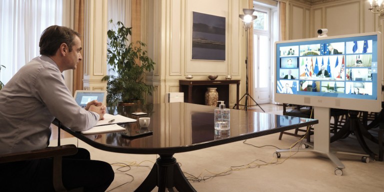 Σε εξέλιξη βρίσκεται η Σύνοδος Κορυφής των Ευρωπαίων ηγετών για τον κορονοϊό, μέσω τηλεδιάσκεψης, στην οποία συμμετέχει ο πρωθυπουργός Κυριάκος Μητσοτάκης.