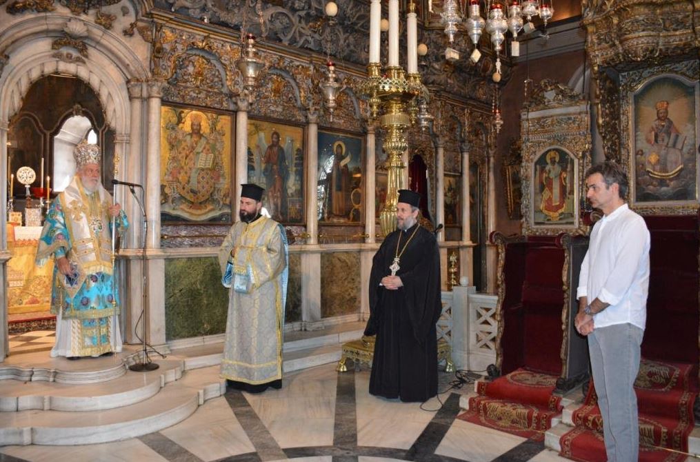 Στην Θεία Λείτουργία της εορτής της Πεντηκοστής και τον Εσπερινό της Γονυκλισίας παρέστη σήμερα ο Κυριάκος Μητσοτάκης στον Πανίερο Ναό Ευαγγελιστρίας της Τήνου.