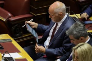 Στις προγραμματικές δηλώσεις ο Γιώργος Παπανδρέου κάθισε στο μπροστινό έδρανο, δίπλα στον (κοινοβουλευτικό εκπρόσωπο) Ανδρέα Λοβέρδο και την Φώφη Γεννηματά. Μετά από χρόνια απουσίας από τη βουλή (το κόμμα που ίδρυσε, το ΚΙΔΗΣΟ, δεν μπήκε στη βουλή το 2015) ήταν φυσικό οι φωτογράφοι να εστιάσουν πάνω του και να παρακολουθούν όλες τις κινήσεις του. Ο πρώην πρωθυπουργός, ενώ οι περισσότεροι κοιτούσαν το κινητό τους, είχε ανοίξει το iPad, χρησιμοποιώντας μάλιστα μία γραφίδα.