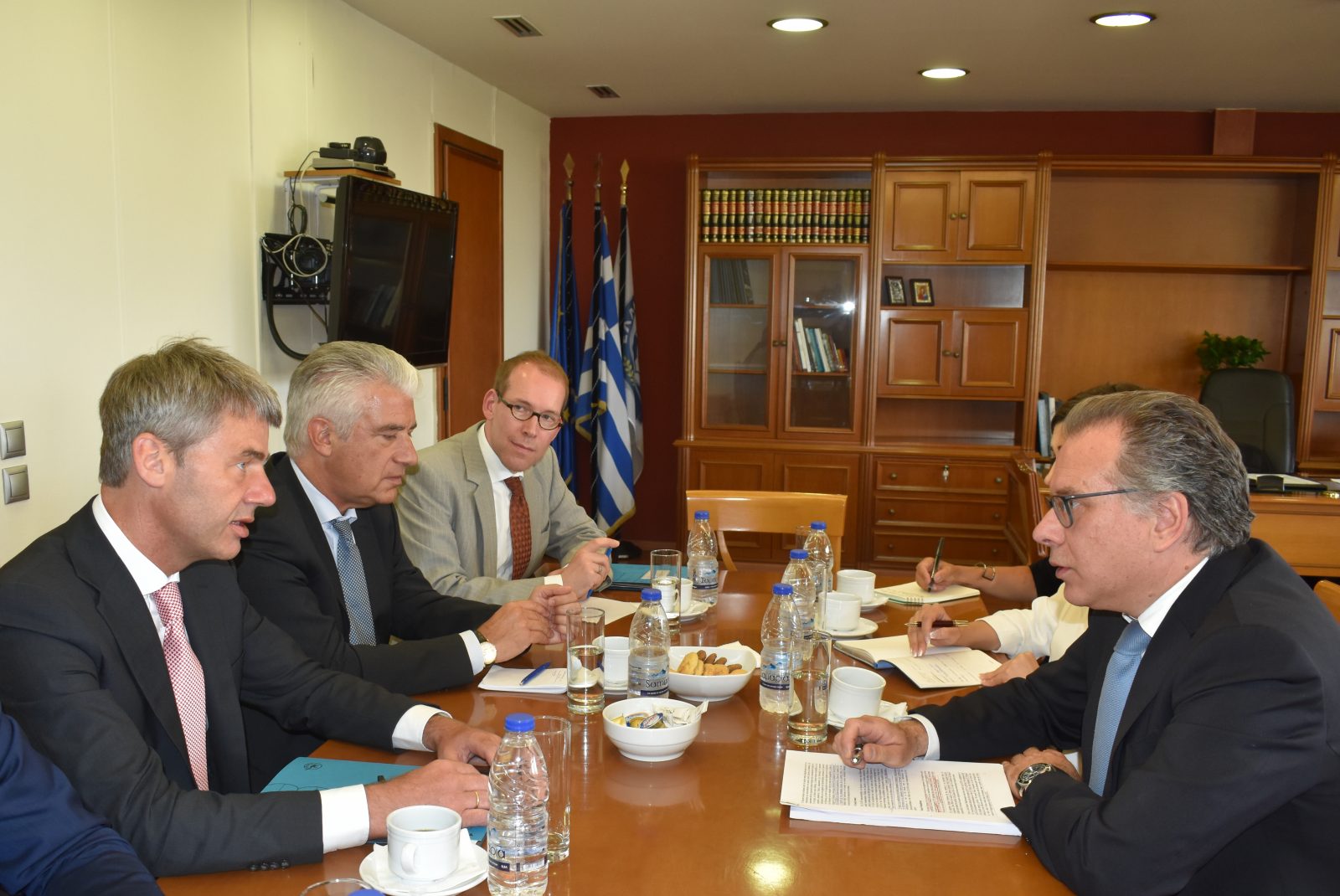 Ο Αναπληρωτής Υπουργός Προστασίας του Πολίτη, αρμόδιος για τη μεταναστευτική πολιτική, κ. Γιώργος Κουμουτσάκος, είχε σήμερα εκτενή συνάντηση με τον κ. Jan Hecker, Σύμβουλο Εξωτερικής Πολιτικής της Καγκελαρίου Μέρκελ.