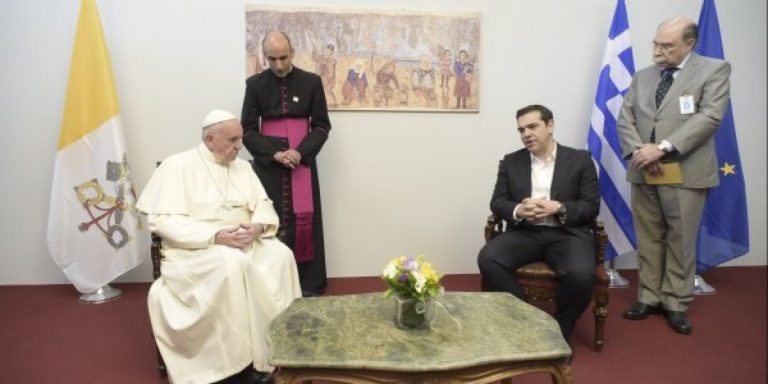 Ο Αλέξης Τσίπρας ευχαρίστησε τον Ποντίφικα για τις προσπάθειές του να ευαισθητοποιήσει τη διεθνη κοινή γνώμη για την ανάγκη αντιμετώπισης της προσφυγικής/μεταναστευτικης κρίσης με ανθρωπισμό, για τη στήριξη της Ελλάδας με την επίσκεψή του στη Λέσβο τις δύσκολες εκείνες στιγμές, καθώς και για τα θερμά του λόγια προς τον Ελληνικό λαό, αλλά και προς το πρόσωπό του.