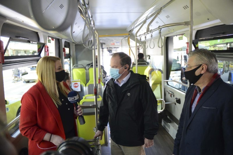 Στη δοκιμαστική διαδρομή από το Σύνταγμα προς τα Χαυτεία επιβιβάστηκε ο υπουργός Μεταφορών και Υποδομών Κώστας Αχ. Καραμανλής, σε ηλεκτροκίνητο λεωφορείο.
