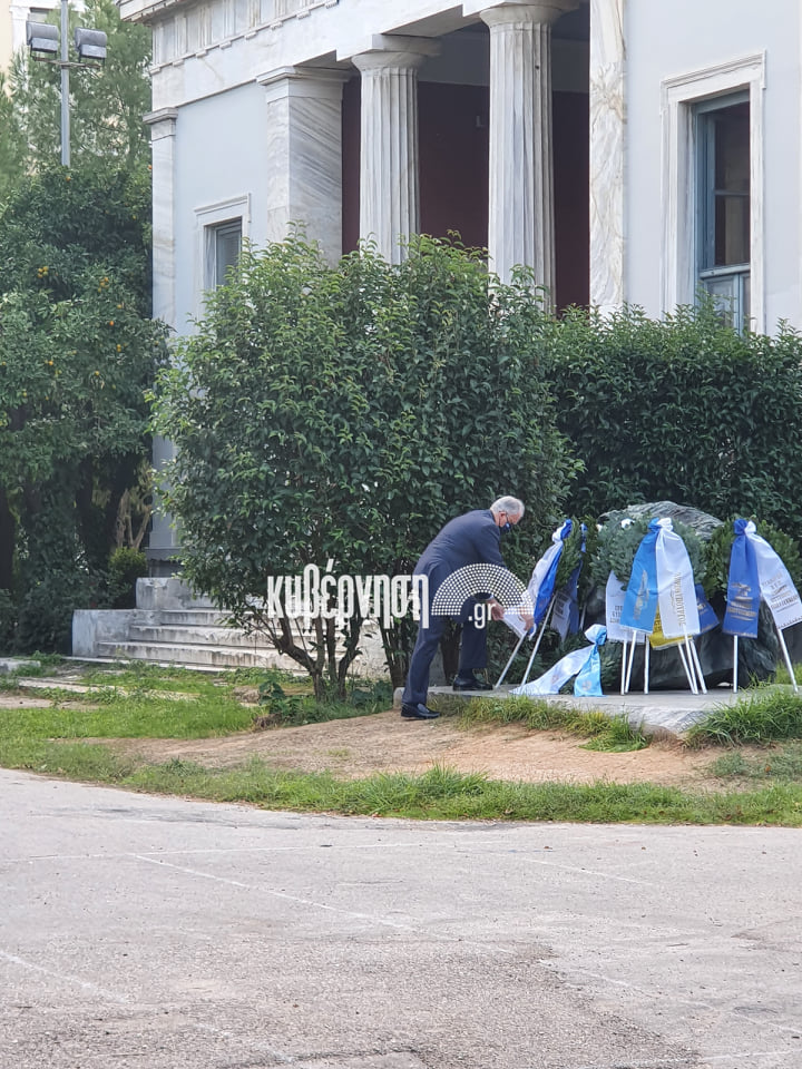 Δύο λεπτά μετά τις 10 το πρωί, ο πρωθυπουργός Κυριάκος Μητσοτάκης προσήλθε στον ιστορικό χώρο του Μετσόβιου Πολυτεχνείου, για να καταθέσει το στεφάνι στη μνήμη των πεσόντων ηρώων της 17ης Νοέμβρη.