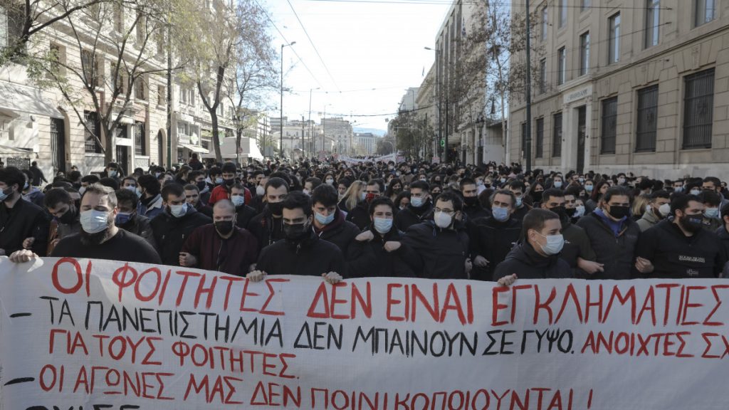 Φοιτητές, μαθητές και εκπαιδευτικοί διαδηλώνουν στο κέντρο της Αθήνας ενάντια στο νομοσχέδιο των υπουργείων Παιδείας και Προστασίας του Πολίτη. Το συλλαλητήριο ξεκίνησε από τα Προπύλαια με κατεύθυνση τη Βουλή και τους διαδηλωτές να φωνάζουν συνθήματα, όπως: «Ούτε αστυνομία ούτε διαγραφές, κάτω τα χέρια από τους φοιτητές», «Ακούστε καλά τι λένε οι φοιτητές έξω η ασφάλεια από τις σχολές».